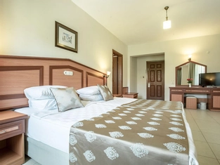Geniş bir alan üzerine inşa edilmiş 3’er katlı 4 bloktan oluşmaktadır. Odalarımız bahçe, orman ve havuz manzaralıdır. STD odalarımızda en fazla 3 kişi, aile odalarında en fazla 4+1, konaklayabilmektedir. Bir ana restoran, iki adet snack bar, 2 adet yetişkin yüzme havuzu, kaydıraklı karma yüzme havuzu 350m 2, iki kaydıraklı bayan yüzme havuzu 190 m2, iki adet çocuk yüzme havuzları ise her biri 15 m2 oluşmaktadır. Otelimizin kendine ait özel plajına 350 metrelik orman yoluyla ulaşılır.